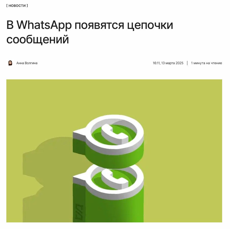 Π WhatsApp ΡΠ΅ΡΡΠΈΡΡΡΡ ΡΠ΅ΠΏΠΎΡΠΊΠΈ ΡΠΎΠΎΠ±ΡΠ΅Π½ΠΈΠΉ. Π€ΡΠ½ΠΊΡΠΈΡ ΠΏΠΎΠΌΠΎΠΆΠ΅Ρ ΠΏΠΎΠ»ΡΠ·ΠΎΠ²Π°ΡΠ΅Π»ΡΠΌ ΠΎΡΡΠ»Π΅ΠΆΠΈΠ²Π°ΡΡ ΡΠ°Π·Π½ΡΠ΅ Π²Π΅ΡΠΊΠΈ ΠΎΠ±ΡΡΠΆΠ΄Π΅Π½ΠΈΠΉ ΠΈ ΡΠ±Π΅ΡΡΡ Π½Π΅ΠΎΠ±Ρ ΠΎΠ΄ΠΈΠΌΠΎΡΡΡ ΠΏΡΠΎΠΊΡΡΡΠΈΠ²Π°ΡΡ ΠΏΠ΅ΡΠ΅ΠΏΠΈΡΠΊΡ Π² ΠΏΠΎΠΈΡΠΊΠ°Ρ ΠΎΡΠ²Π΅ΡΠ°.