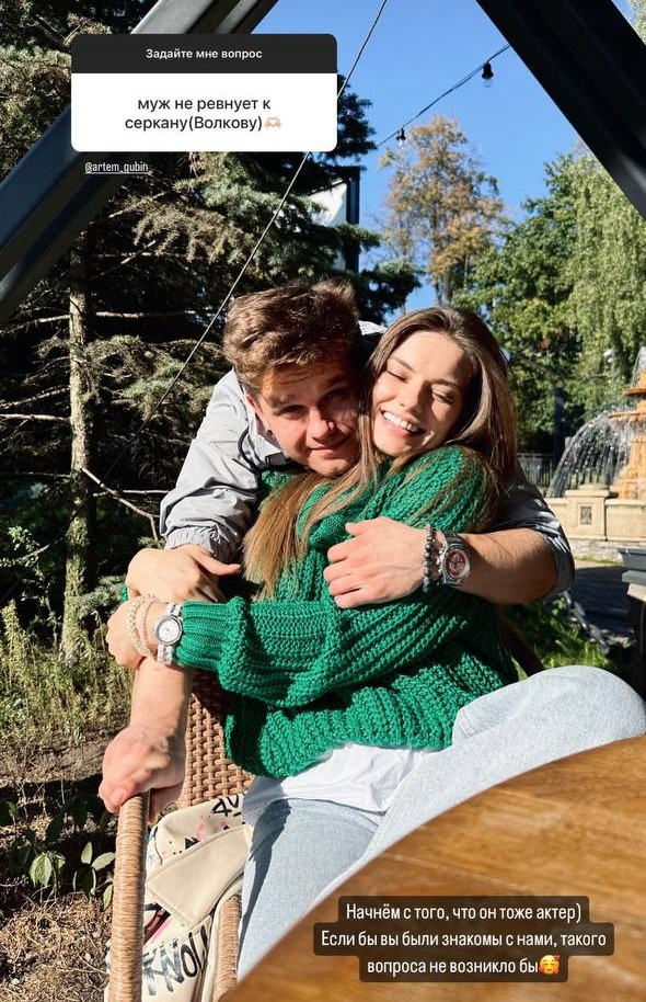 Гриба написала, что ее супруг Артем Губин — тоже актер, поэтому он понимает, как проходят съемки: «Если бы вы были знакомы с нами, такого вопроса не возникло бы», — отметила звезда.
