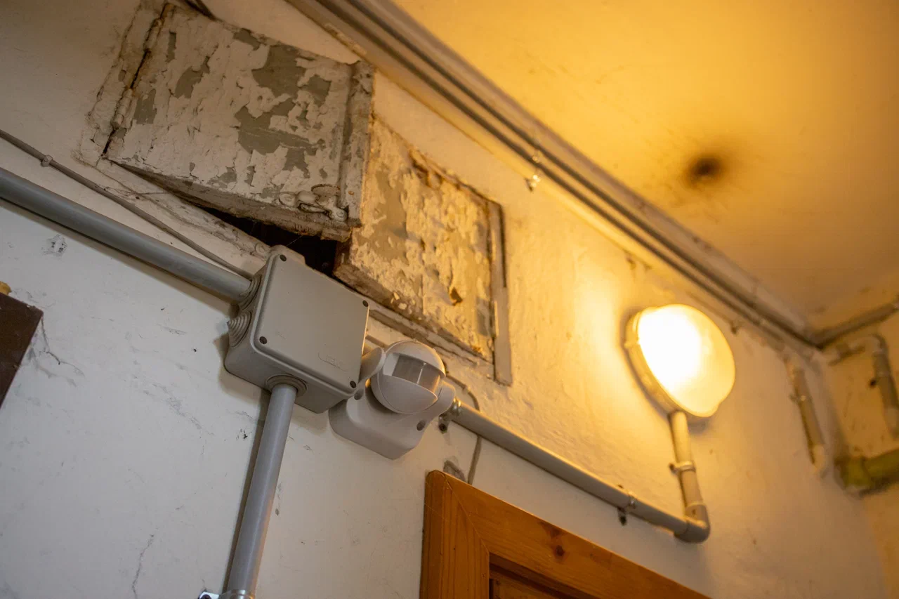 Проверка заземления, обслуживание щитов, освещения, пожарной автоматики, внутридомовых сетей. Контроль общедомовых приборов учёта.