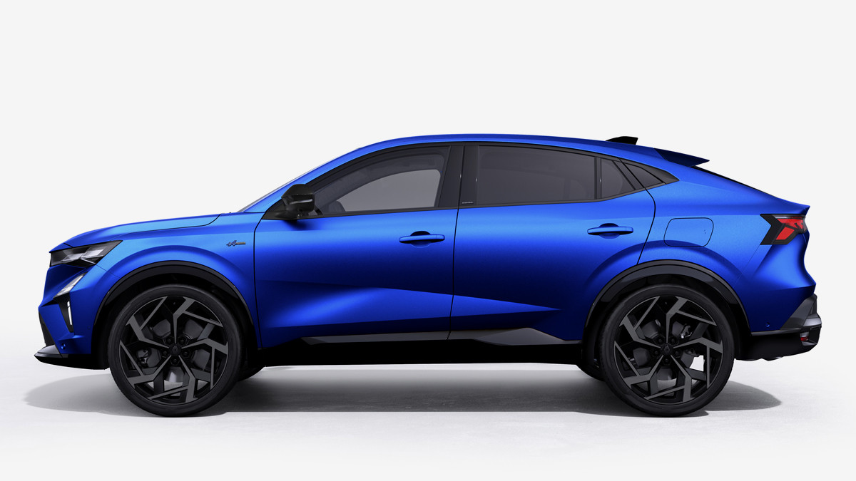Базовый подключаемый гибрид Renault Rafale под названием Esprit Alpine мало чем отличается от ранее представленной переднеприводной версии. У него есть соответствующие шильдики на кузове, а также оригинальные 20-дюймовые колёсные диски. Топовый вариант Atelier Alpine получил кузов, окрашенный в синем цвете Satin Summit, чёрный «плавающий» спойлер, а также 21-дюймовые колёсные диски, обутыми в спортивные шины Continental.