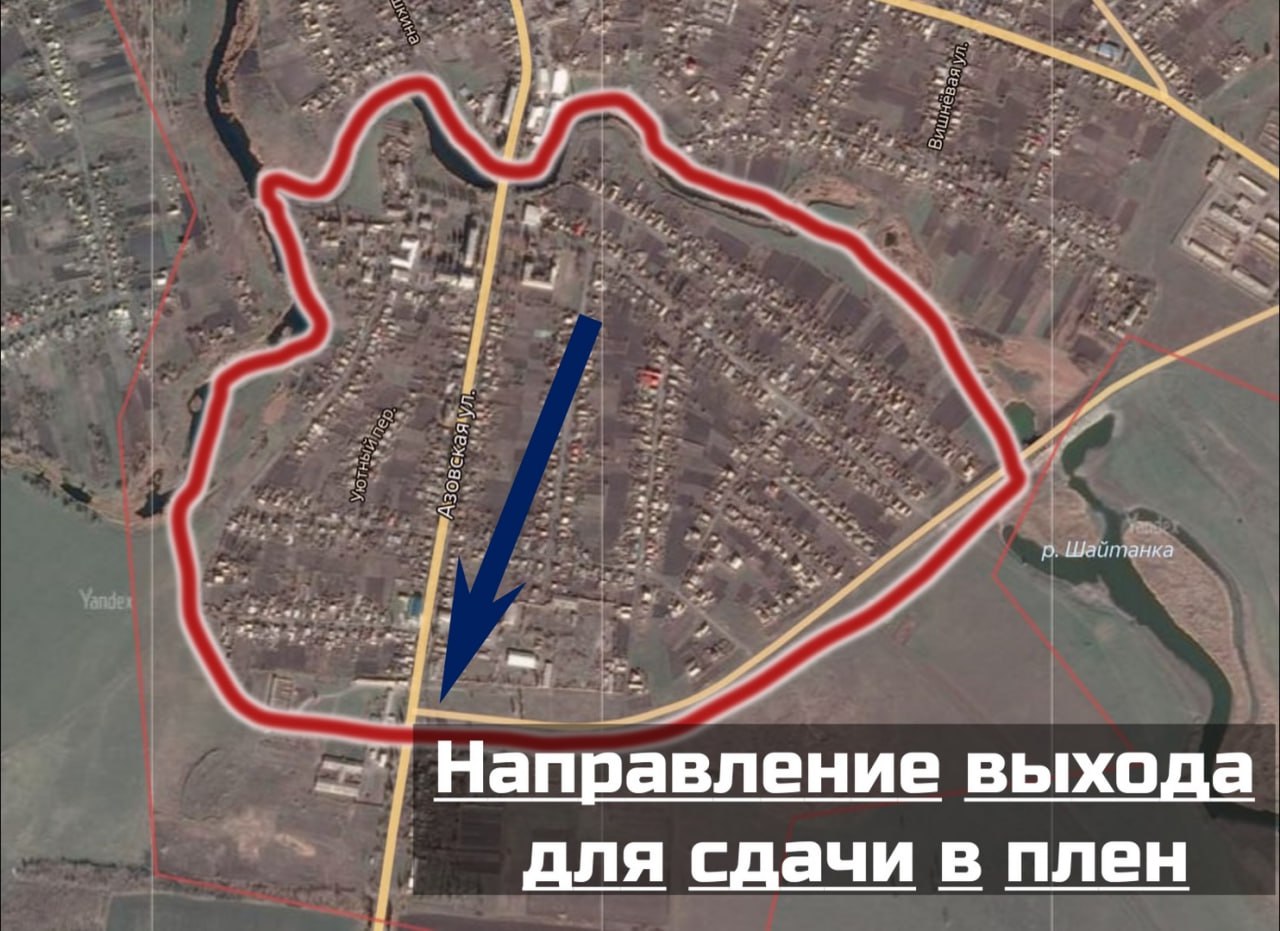 ☠️Остатки 110 омбр к югу от р. Шайтанка фактически списаны командованием, а потому единственный выход для них избежать гибели — выйти и добровольно сдаться в плен.