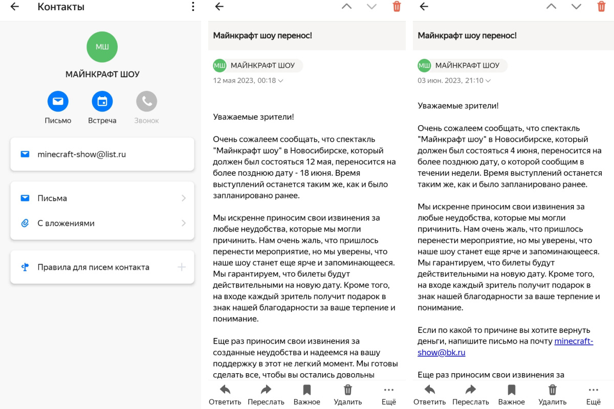 — Про 4 июня они написали именно в группе во «ВКонтакте». Те люди, которые были в группе, были в курсе. Остальные, кто на почту получил сообщения, — в пролете. И уже