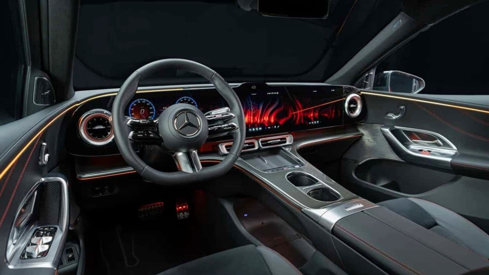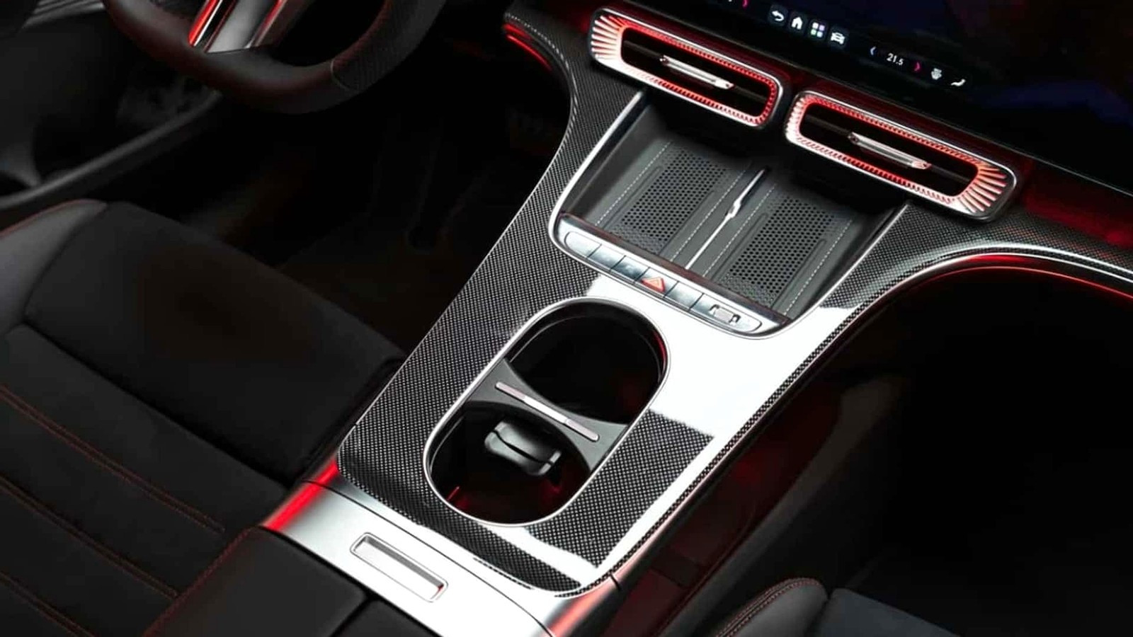 Новый MBUX Hyperscreen формально меньше предыдущего, но предыдущее супертабло состоит из трёх экранов, а тут монолит, как у лучших «китайцев», причём он снабжён настраиваемой матричной подсветкой, состоящей из более чем 1000 светодиодов — можно затемнить одни области экрана, а другие сделать более яркими, чтобы сфокусировать на них внимание водителя. Но на простых версиях Mercedes-Benz GLC with EQ Technology будут всё же раздельные экраны — выглядеть это будет примерно как у нового Mercedes-Benz CLA. Дефлекторы вентиляции снабжены собственной контурной светодиодной подсветкой, меняющей цвет в зависимости от выставляемой температуры.