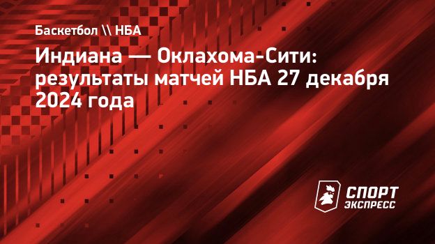 «Оклахома» на выезде переиграла «Индиану» в матче регулярного чемпионата НБА — 118:112.
