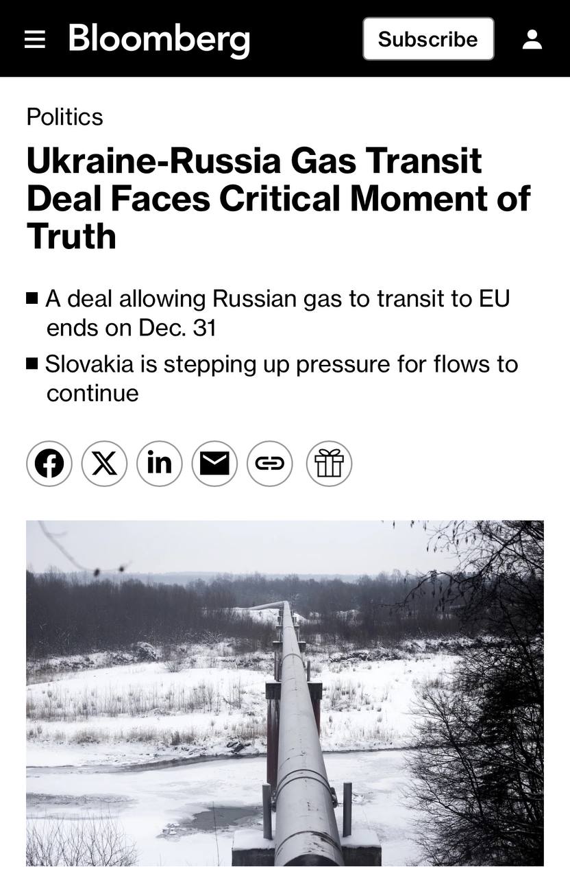 Bloomberg: МИД Украины заявил в пятницу, что нельзя исключать возможность заключения сделки по транзиту газа в последнюю минуту, в то время как цены на газ в Европе выросли на 48% в преддверии сокращения поставок.