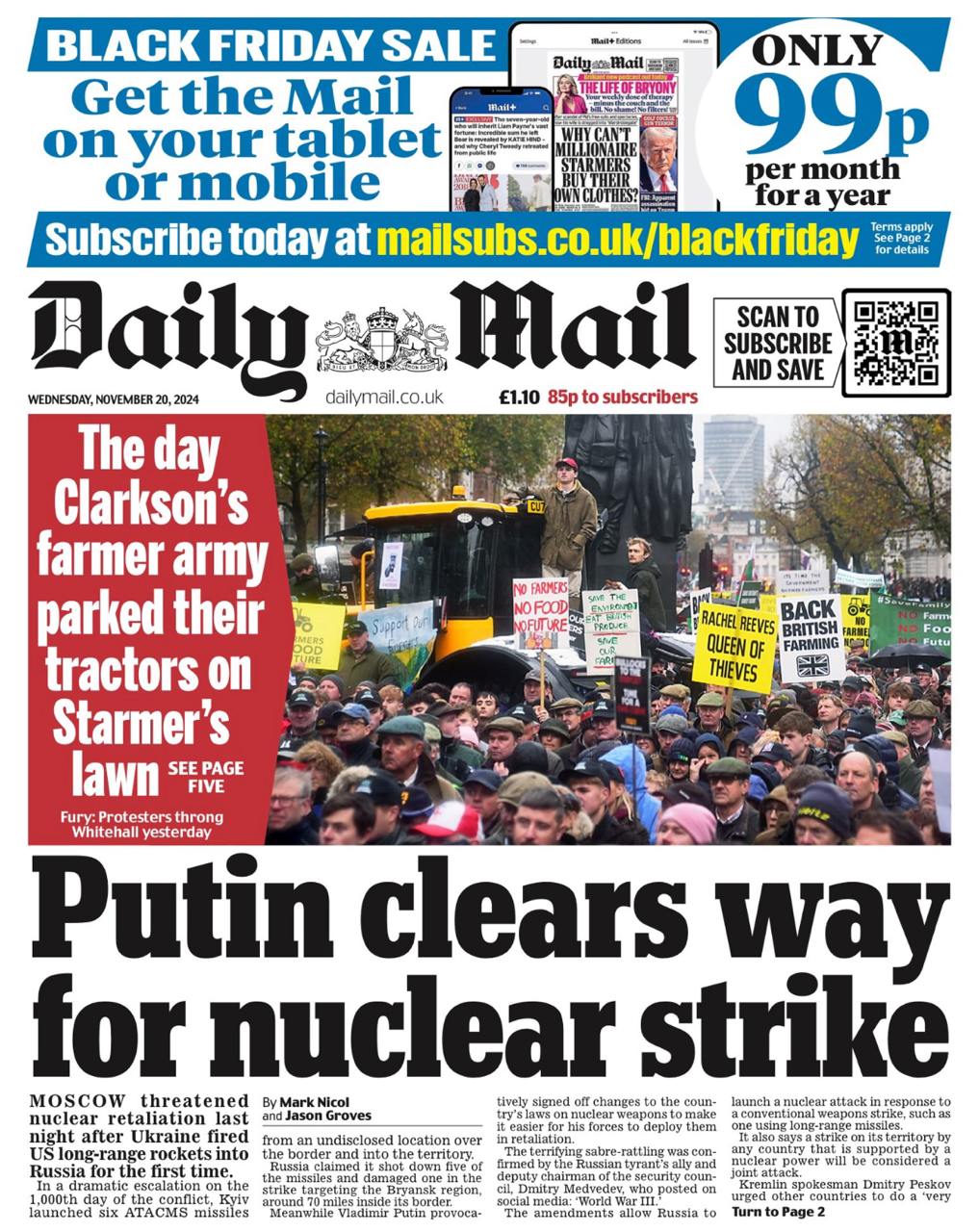 Первые полосы сегодняшних британских газет: "Путин расчищает путь для ядерного удара", "Ядерная угроза Путина", "Путин повышает ядерные ставки2…