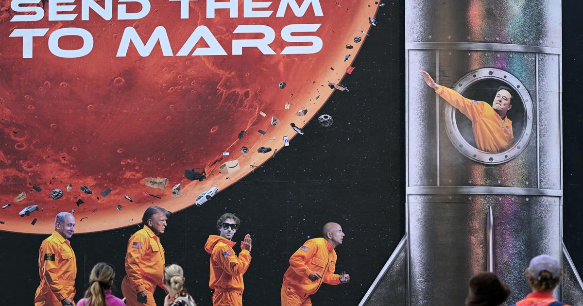 Sur un grand panneau, un slogan donne le ton : « Envoyez-les sur Mars… pendant que nous faisons la fête sur Terre. » Le patron de Tesla y est représenté dans une combinaison orange évoquant aussi bien celle des astronautes que la tenue des détenus américains. Son bras droit est tendu, à l’image du geste qu’il a fait le jour de l’investiture de Donald Trump pour son second mandat. Une image qui a suscité une polémique aux États-Unis, tant le geste rappelle le salut nazi. « Vu l’engouement des technophiles pour Mars, il semble tout à fait juste de les y aider », déclare avec sarcasme un des membres du collectif.