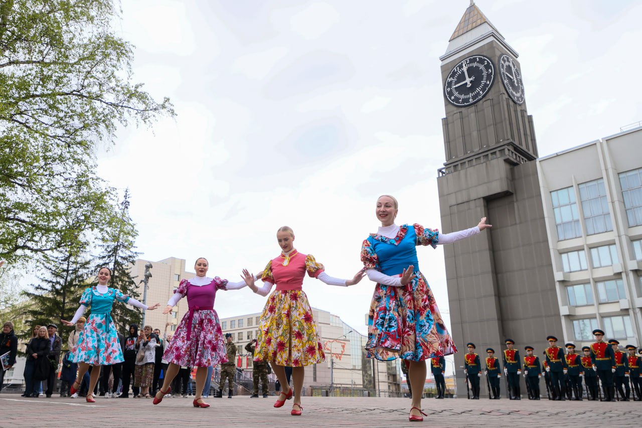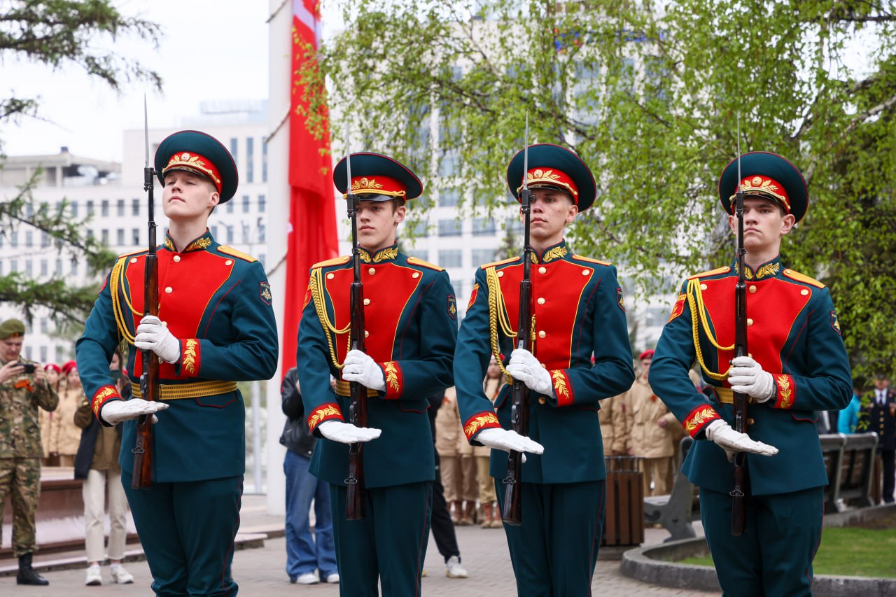 Делимся яркими кадрами торжественной церемонии поднятия флага Победы