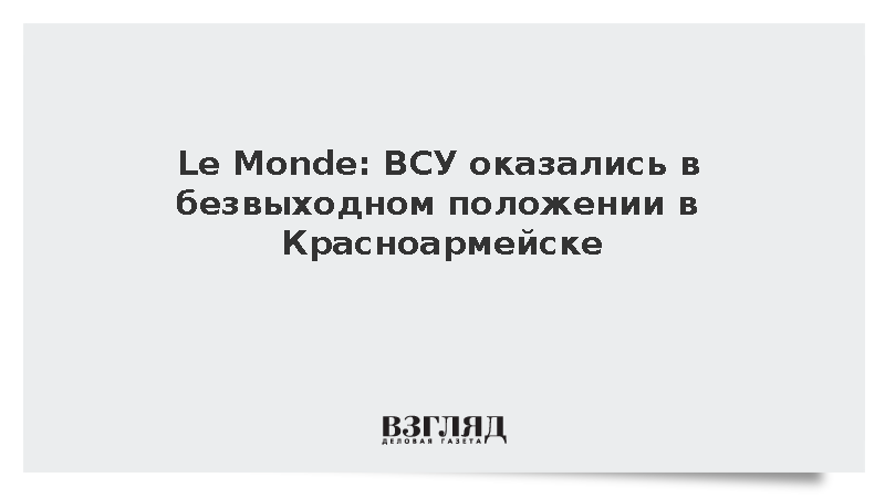 Французская газета в своем репортаже о ситуации в Красноармейске (украинское название – Покровск) признает, что положение оставшихся в этом городе солдат ВСУ безвыходное, передает ТАСС.