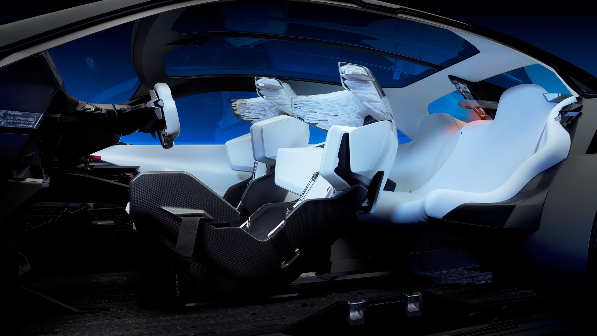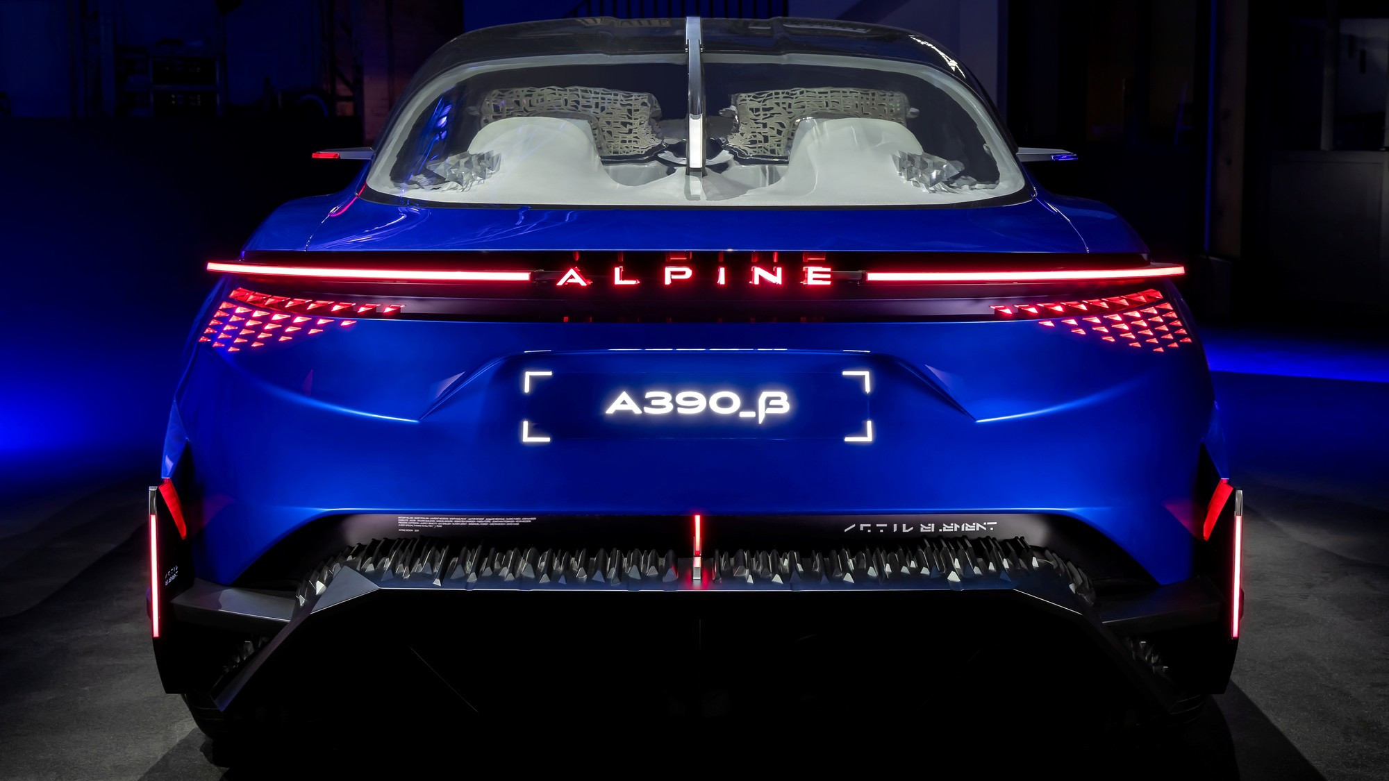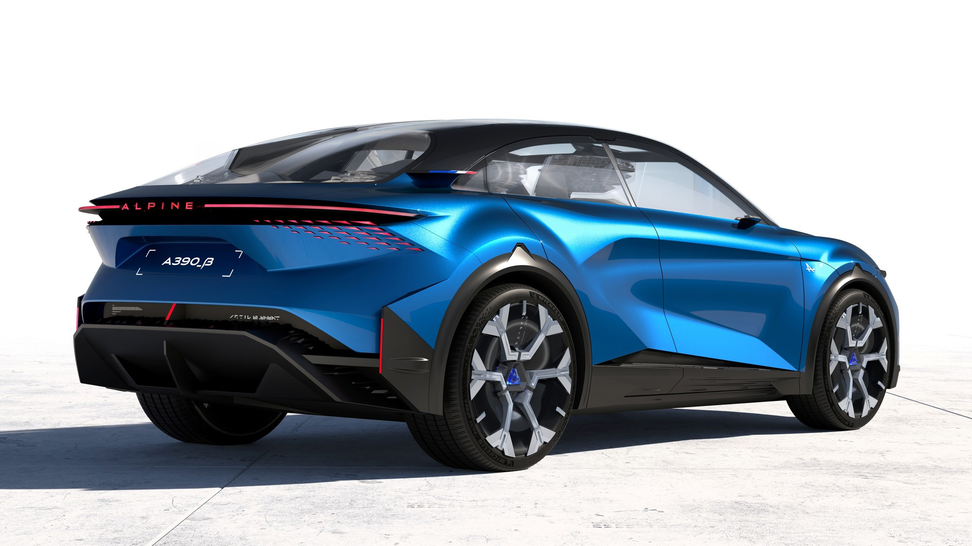 Серийный Alpine A390 сохранит испещрённый треугольничками передок и блестяще выверенные пропорции кузова прототипа, но единых дверных проёмов и распахивающихся в разные стороны боковых дверей не будет, а будут традиционные центральные стойки, необходимые для обеспечения должной жёсткости кузова и пассивной безопасности. Раздвижная корма прототипа тоже, скорее всего, в серию не пойдёт, хотя выглядит она эффектно: развитый диффузор и как бы парящая в воздухе полоса задних фонарей у прототипа могут выдвигаться назад на 80 мм, создавая эффект длинного хвоста и улучшая аэродинамические характеристики кузова.