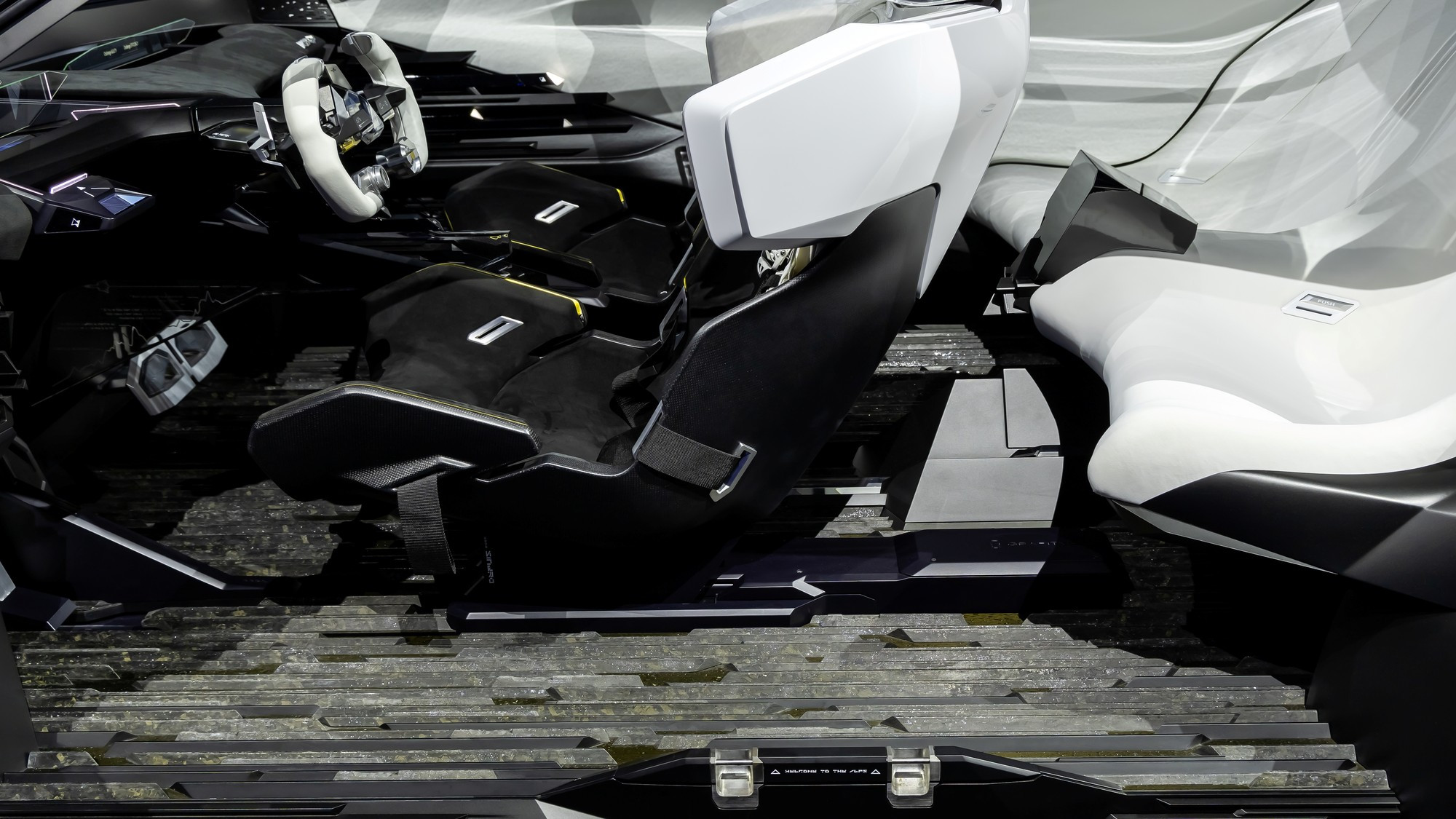 Салон прототипа имеет нарочито имеет скульптурные передние кресла с гипертрофированной боковой поддержкой и четырёхточечными ремнями безопасности Sabelt. Форма этих кресел «подсмотрена» у болидов Формулы-1, причём водительское может всем корпусом заваливаться назад, чтобы водитель мог буквально занять ту же позу, что пилот Формулы-1, под такую специфическую посадку подстраиваются также педальный узел и руль в виде гоночного штурвала.