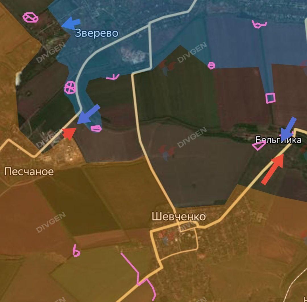 - в Зверево и за посадки вдоль бывшей "железки" восточнее; Песчаное - за бригадой "Бешенные псы";