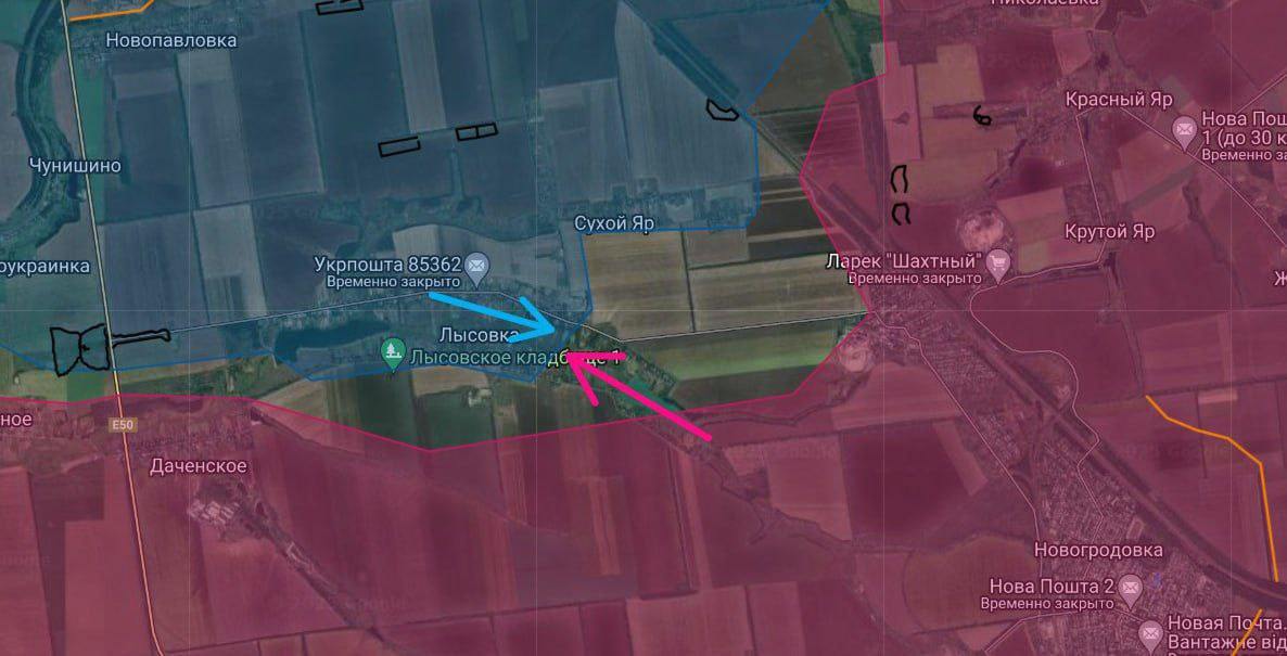 - в Удачном, где наши штурмы атакуют в районе у центра и пытаются зайти с юга;