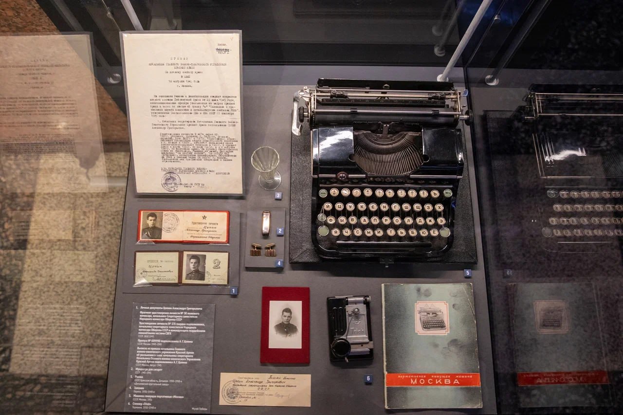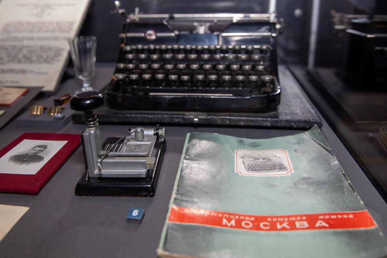 Вы сможете увидеть личные вещи, предметы быта, документы и уникальные фотографии ветерана. Особый интерес представляют раритетные пишущие машинки «Москва» и «Адлер». Все экспонаты переданы его внучкой Юлией Колдаевой.