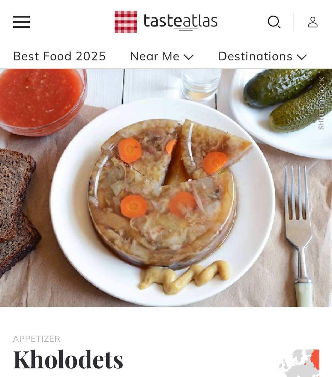 По мнению энциклопедии TasteAtlas, холодец занял 64-е место.