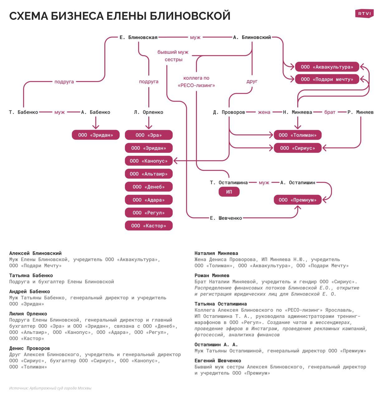 В схеме по дроблению бизнеса королевы «Марафонов желаний» Елены Блиновской участвовало 21 юридическое лицо.