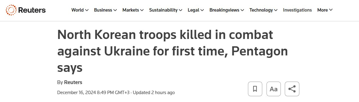 🇰🇵 Западная пресса со ссылкой на Пентагон пишет о гибели военных КНДР в Курской области