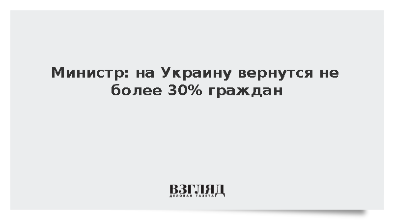 Министр национального единства Украины Алексей Чернышев заявил, что после завершения боевых действий на родину вернутся не более 30% граждан, покинувших страну с начала 2022 года.