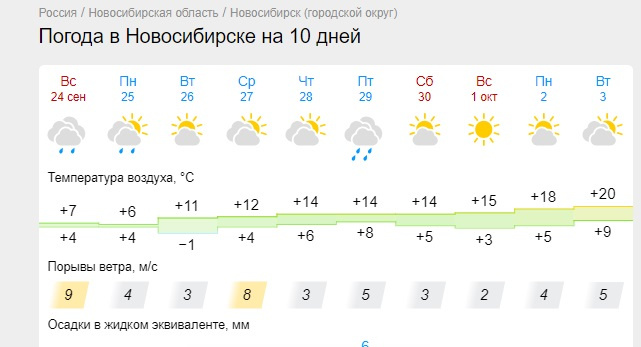 В Новосибирске ожидается холодная рабочая неделя с дождями. Изучаем прогнозы популярных сервисов. Придется уже доставать теплые вещи. Заморозки до -1 градусов ожидаются во вторник, 26 сентября.