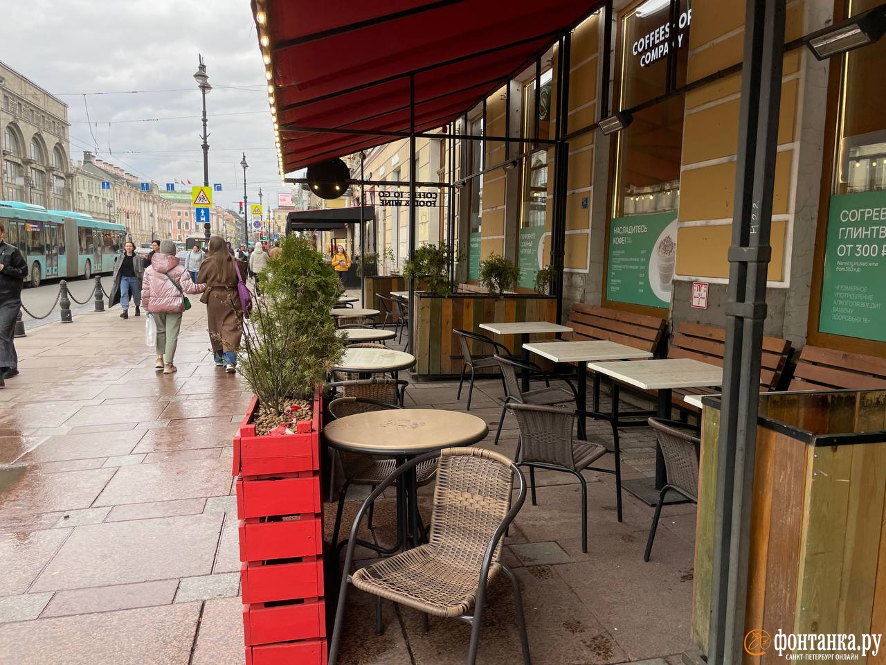 Сезон летних кафе в Петербурге стартовал 16 апреля. И за прошедшие дни на Невском проспекте их открылось уже много, заметил корреспондент «Фонтанки» 24 апреля. Почти летний вид проспекта, заставленного верандами ресторанов, контрастирует с еще закутанными в пуховики и куртки горожанами: погода в городе вернулась к «плюсу», но еще прохладная.