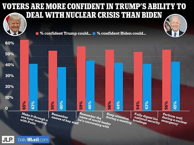 Кто должен быть президентом в условиях ядерной войны? Уже такими вопросами приходится нынче задаваться социологам. 56% американцев уверены, что Трамп сможет лучше себя показать в случае “ядерного кризиса”. Только 45% имеют такое же мнение о Байдене.