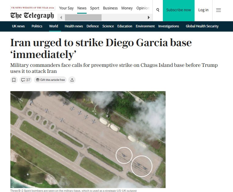 В Иране призывают нанести превентивный удар по совместной базе Великобритании и США Диего-Гарсия на британских островах Чагос, прежде чем Трамп использует эту базу для нападения на Иран, пишет The Telegraph, ссылаясь на источники.