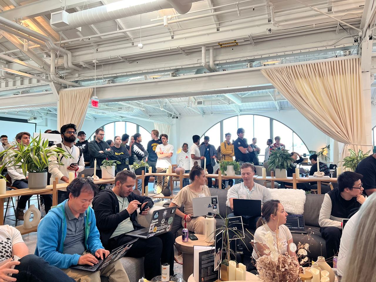 Это фото с хакатона, где разработчики представляли проекты на основе Llama 3.