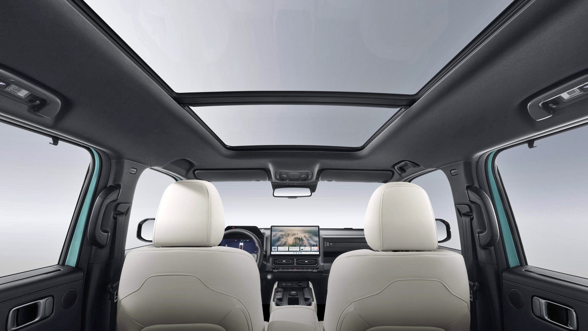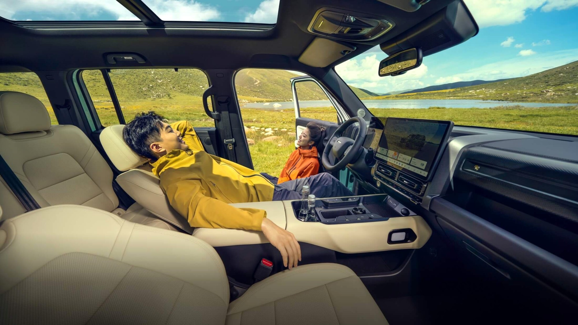 Салон у обновлённого Haval Raptor Hi4, в сущности, такой же, как у чисто бензиновой версии, с новым двухспицевым рулём и переехавшим на рулевую колонку селектором АКП. Приборный экран — 12,3-дюймовый, мультимедийный — 14,6-дюймовый. В стандартное оснащение входят проекционный экран, 50-ваттная беспроводная зарядка для смартфона, двухзонный климат-контроль, передние кресла с вентиляцией и обогревом, обивка из кожзама, мощная аудиосистема с 10 динамиками и довольно богатый набор электронных ассистентов водителя. Объём багажника — 586 л, со сложенными спинками заднего дивана — 1404 л. В багажнике есть полноценная бытовая розетка на 220 В мощностью 2200 Вт.