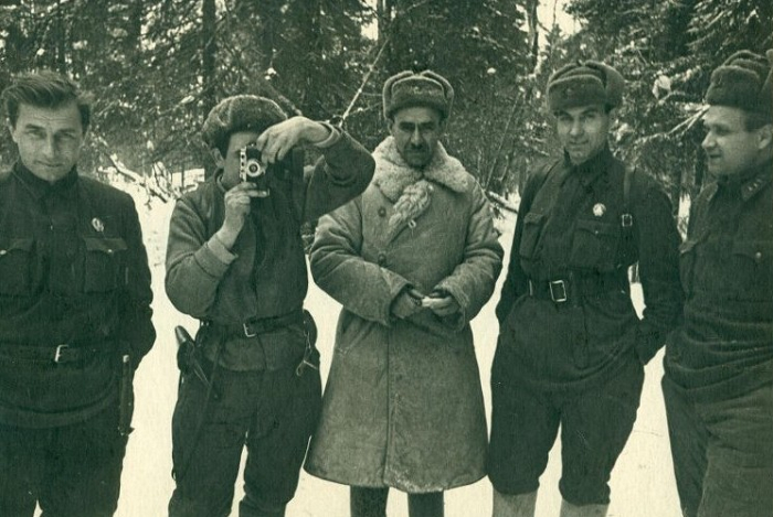 Борис Ильич Шер с камерой в партизанском отряде Фото Музей ЦСДФ