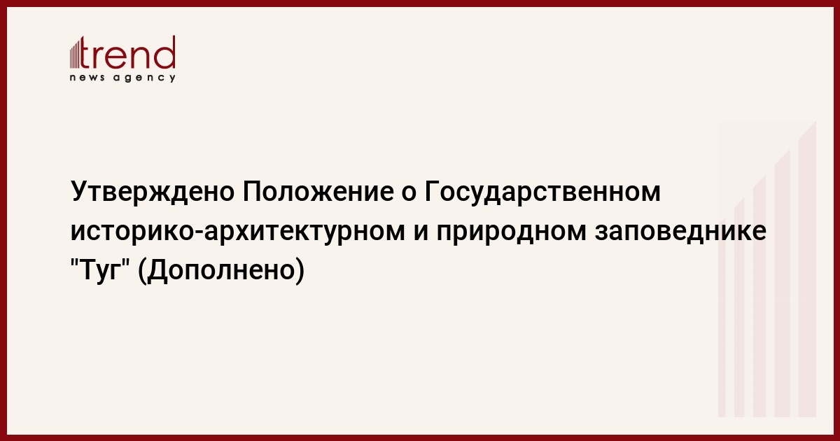 БАКУ /Trend/ - Утверждено Положение о Государственном историко-архитектурном и природном заповеднике "Туг".