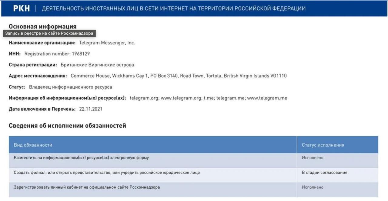 Telegram начал регистрацию представительства в России, сообщают профильные ресурсы.