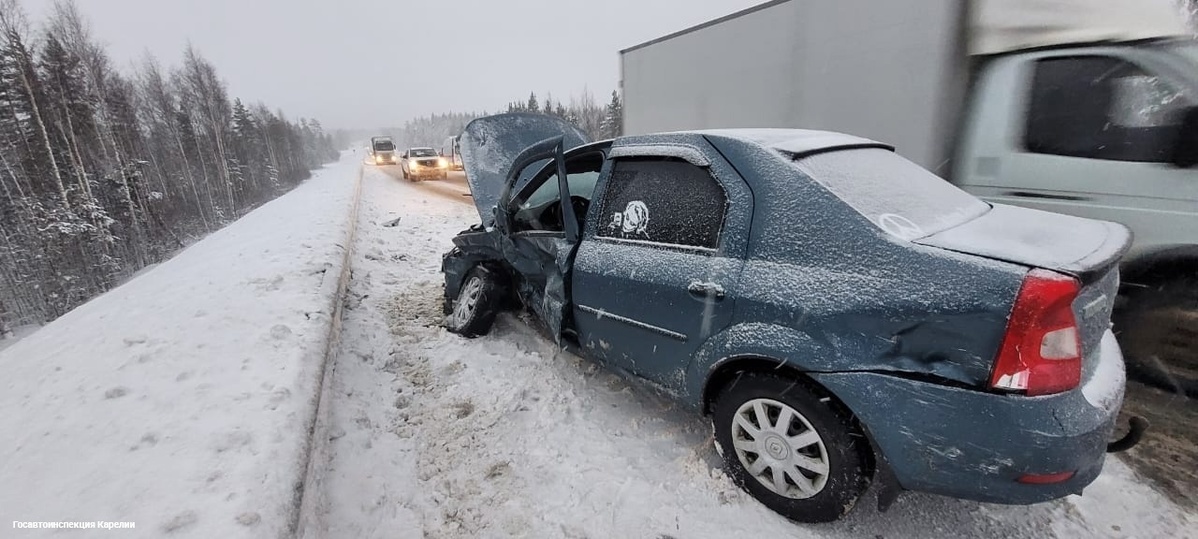 Как сообщили в Госавтоинспекции Карелии, 20 декабря в 8:40 на 696 километре трассы Кола в Сегежском районе жестко столкнулись два автомобиля, есть пострадавшие.