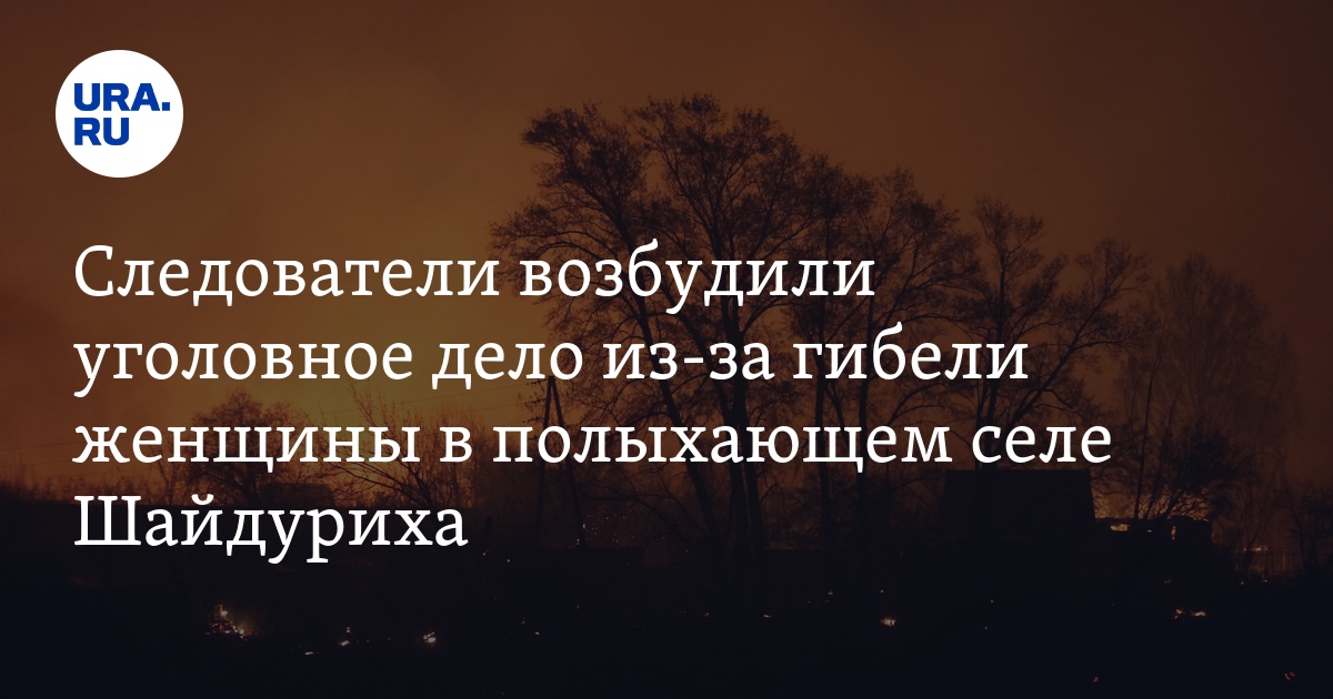«Утром 13 июля в следственный отдел по городу Невьянск поступила информация об обнаружении тела женщины в ходе тушения пожара в селе Шайдуриха. По поручению исполняющего обязанности руководителя следственного управления регионального СКР Анатолия Надбитова возбуждено уголовное дело по статье „Причинение смерти по неосторожности“», — заявили в ведомстве.