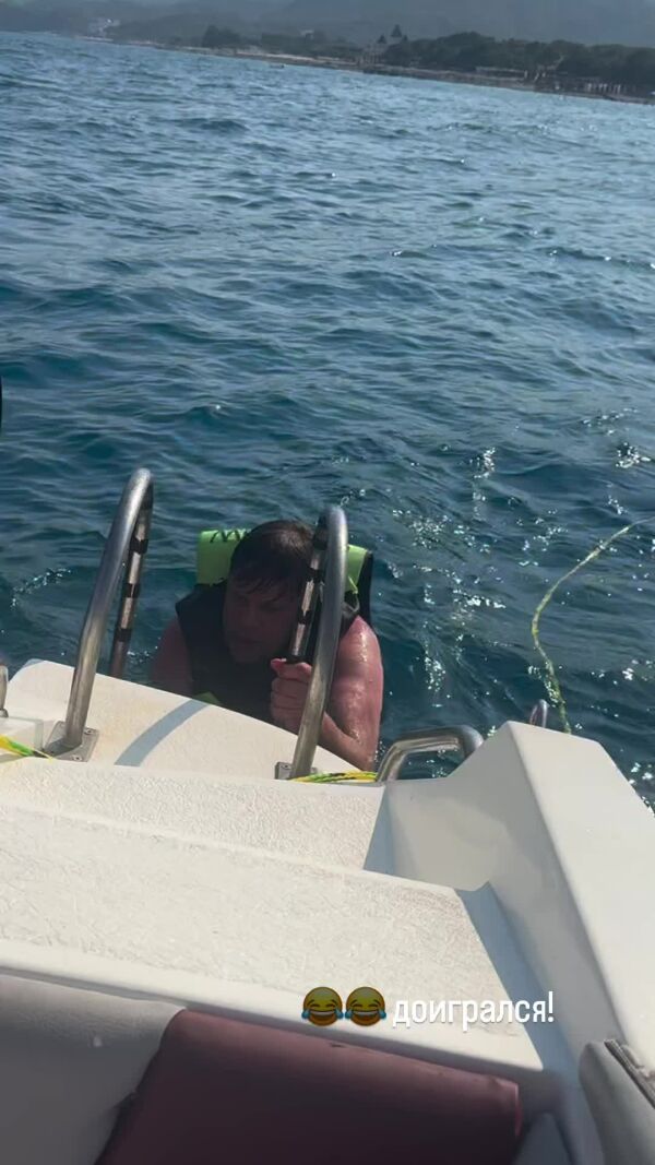 Потом, правда, футболисту пришлось вплавь добираться до катера. «Спасение утопающего. Доигрался!» — посмеялась над Владиславом избранница и показала, как тот еле забирается на судно.