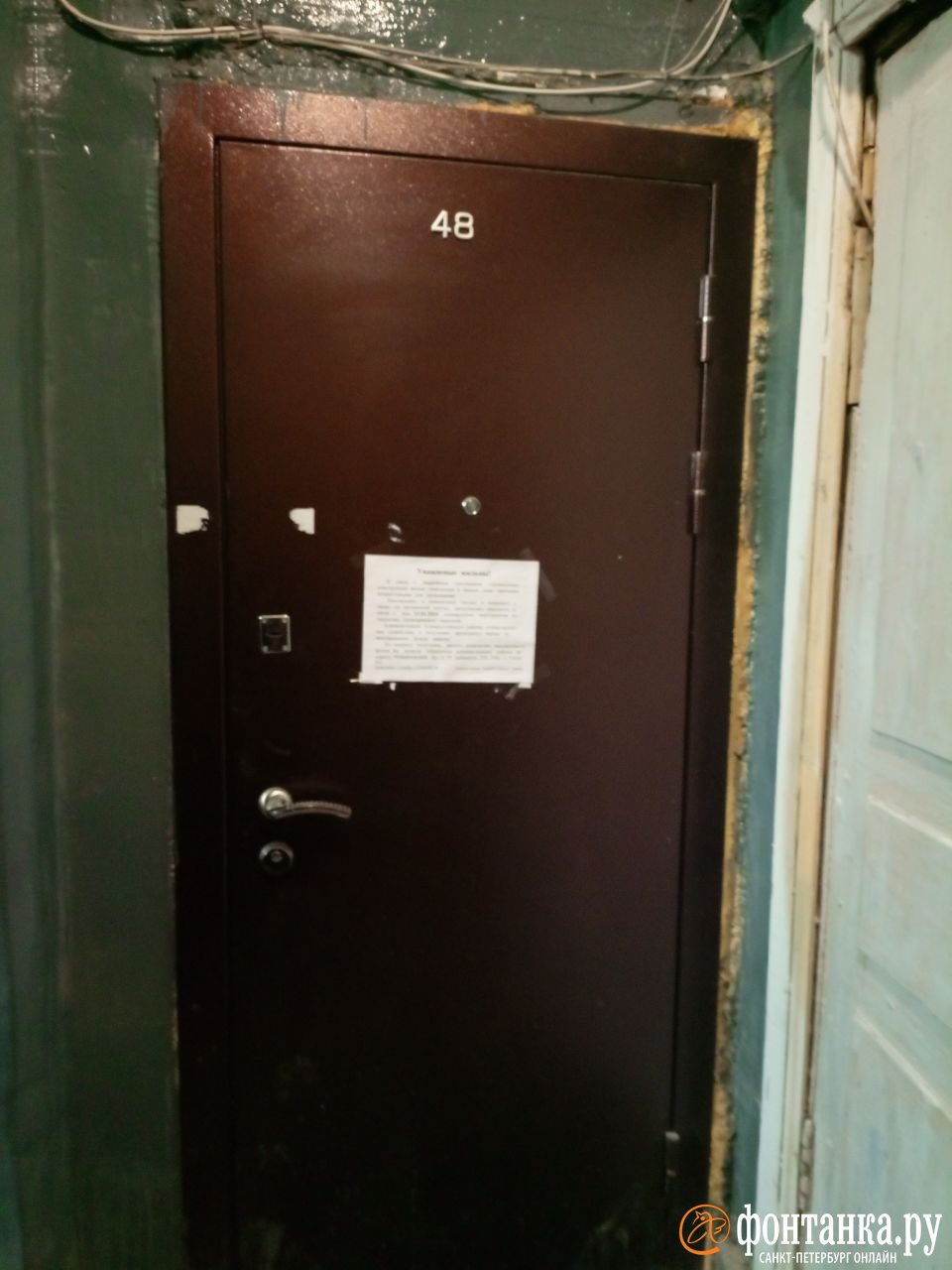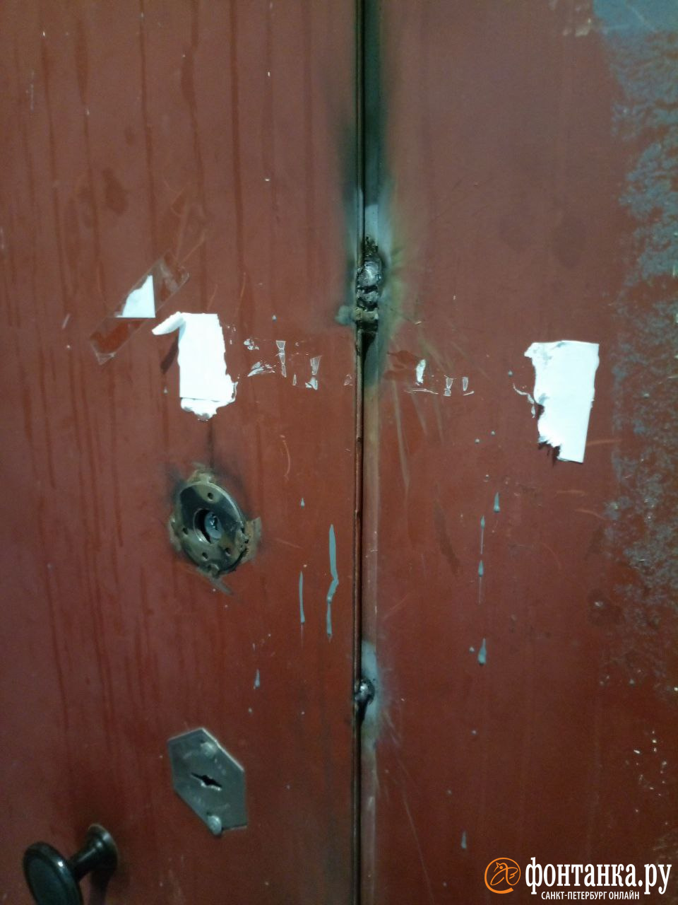 В парадной видно, что свет горел еще в двух квартирах, но дверь никто не открыл. Как минимум, одна из дверей уже заварена.