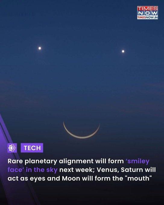 25 апреля Луна, Венера и Сатурн выстроятся в небесный парад: лунный серп создаст улыбку, а планеты станут глазами.