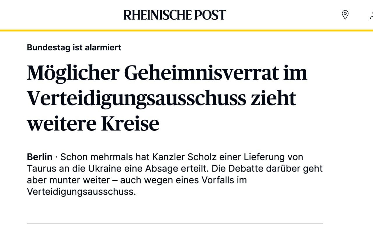 π©πͺ Π ΠΡΠ½Π΄Π΅ΡΡΠ°Π³Π΅ ΠΈΠ½ΠΈΡΠΈΠΈΡΡΡΡ ΡΠ°ΡΡΠ»Π΅Π΄ΠΎΠ²Π°Π½ΠΈΠ΅ ΠΈΠ·-Π·Π° ΡΡΠ΅ΡΠΊΠΈ Π΄Π΅ΡΠ°Π»Π΅ΠΉ ΠΎΠ±ΡΡΠΆΠ΄Π΅Π½ΠΈΡ ΠΎ Taurus Π΄Π»Ρ Π£ΠΊΡΠ°ΠΈΠ½Ρ β Rheinische Post