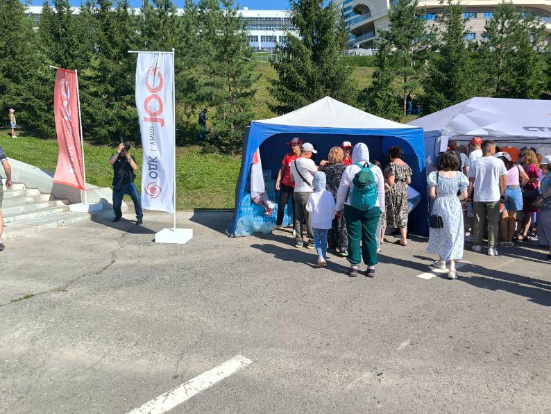 УМПО позаботилось о пришедших. Четверг выдался жаркий, и в двух палатках бесплатно раздавали воду, флажки и бумажные кепки. Такие подарки оказались кстати. Правда, в итоге кепки были не очень удобные. У многих же картонка просто слетала с головы, а я просто не поняла, как их собирают.