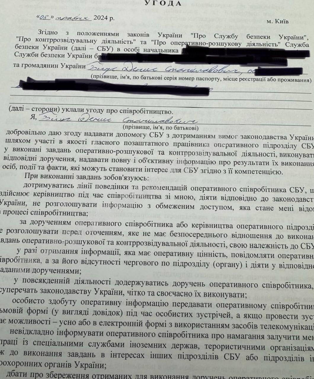 Документы, как утверждается, о сотрудничестве со Службой безопасности, были подписаны в мае 2024 года.