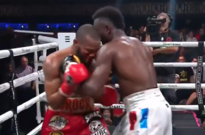 В 9-м раунде бой превратился в одностороннее доминирование чемпиона. Он уверенно вёл поединок к победе, а тут ещё и рефери помог — зачем-то включился и остановил бой. Преждевременная остановка, которая не на руку доминиканцу.