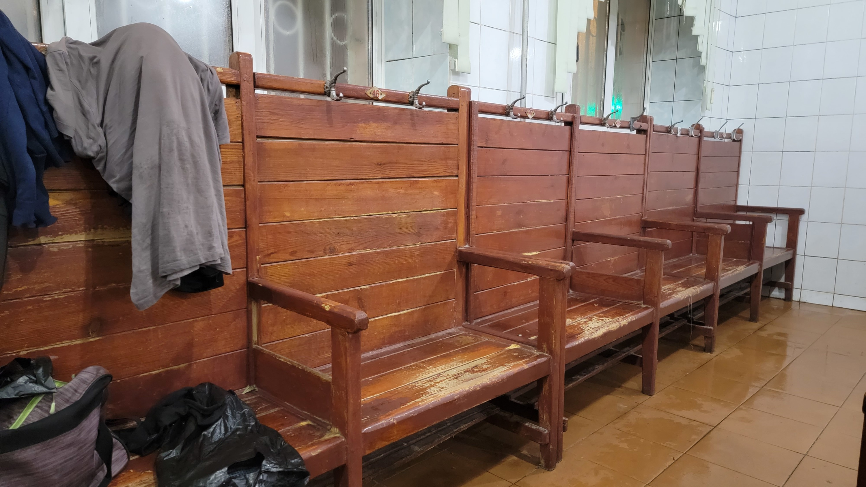 Среди парящихся и моющихся большинство иностранцы. Многие из них вместо килта или простыни носят здесь просто нижнее белье или шорты. Но это не так бросается в глаза, как гость, который в чем мать родила отважно садится то на гранитные лавочки в помывочной, то — потом в раздевалке — на лавку.