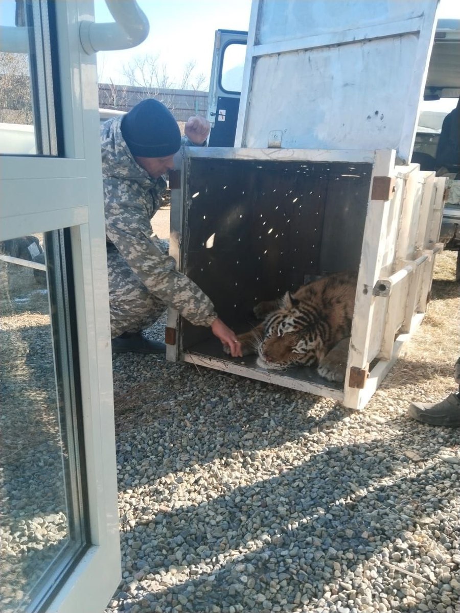 Напомним, что тигра пришлось изымать из дикой природы в окрестностях села Эбергард Дальнереченского района после того, как он две недели регулярно выходил в населённый пункт, охотился на собак, не боясь ни людей, ни автомобилей.