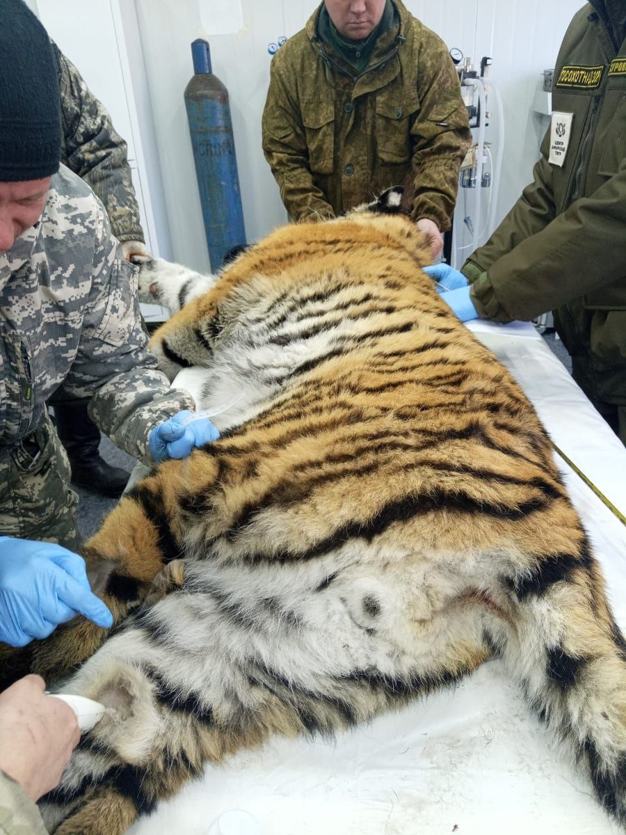 Как сообщило министерство лесного хозяйства, охраны окружающей среды, объектов животного мира и природных ресурсов Приморья, тигра доставили в реабилитационный центр в Алексеевке и после ветеринарного осмотра поместили в вольер для дальнейшего наблюдения. Травм или заболеваний у хищника нет.