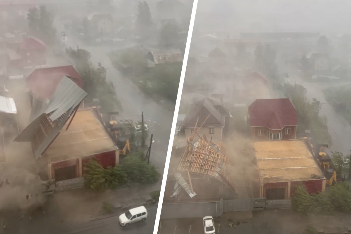 Ураганный ветер, который вместе с ливнем обрушился на Новосибирск, снес крышу частного дома на улице Николая Островского. Момент разрушений попал на видео.
