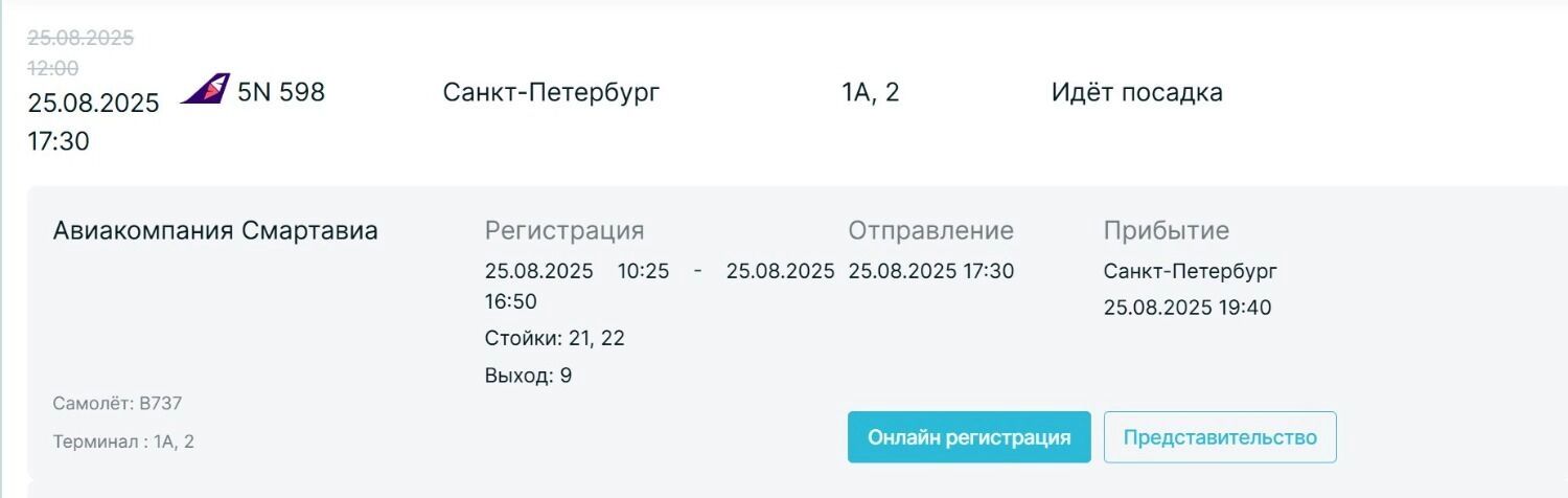 Второй самолет этого авиаперевозчика также задерживается. Вместо 18:30 судно вылетит в Санкт-Петербург в 20:40.