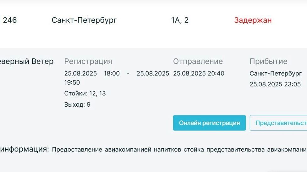 Авиакомпания «Северный ветер» также задержала свой самолет. Вместо 12:05 пассажиры отправились в полет в 15:34.