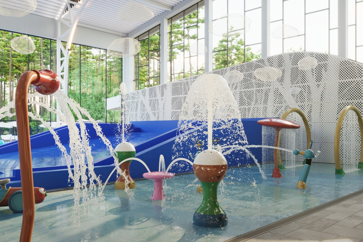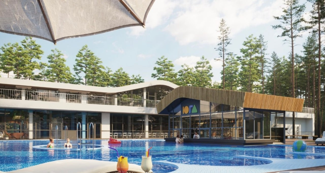 На площади 15,4 тысячи квадратных метров шесть бань, три бассейна, Splash-парк с волной для серфинга, кафе и парковка. Скоро там появятся домики для проживания, еще 11 бань, также оборудуют пляжную зону.