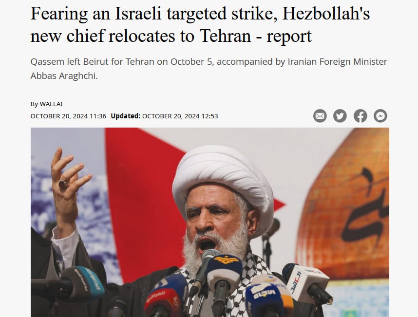 🔴 Новый лидер «Хезболлы» перенес свой штаб в Тегеран