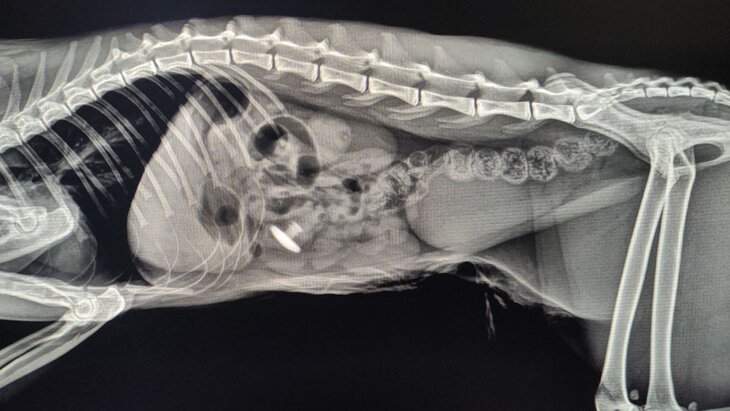 "Нужно ограничить подвижность животного и немедленно доставить его в ветклинику. Симптомами инородных предметов в желудке является отказ от еды, рвота, вялость, признаки боли", – отмечают специалисты.