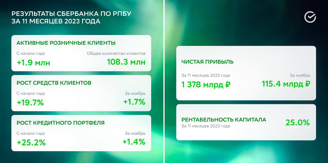 Сбер подвел итоги за 11 месяцев 2023 года.